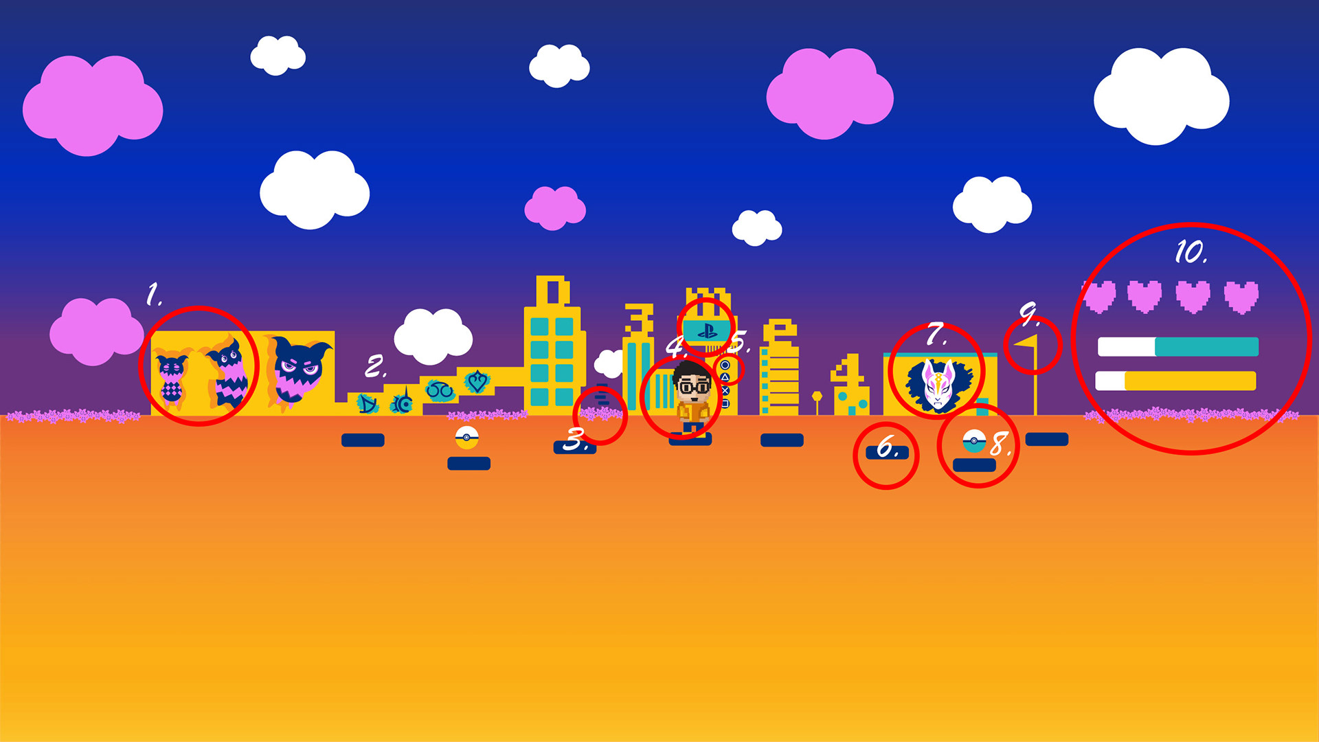 9. The flag was a reference I added myself alluding to reaching the final goal in a game such as Super Mario.